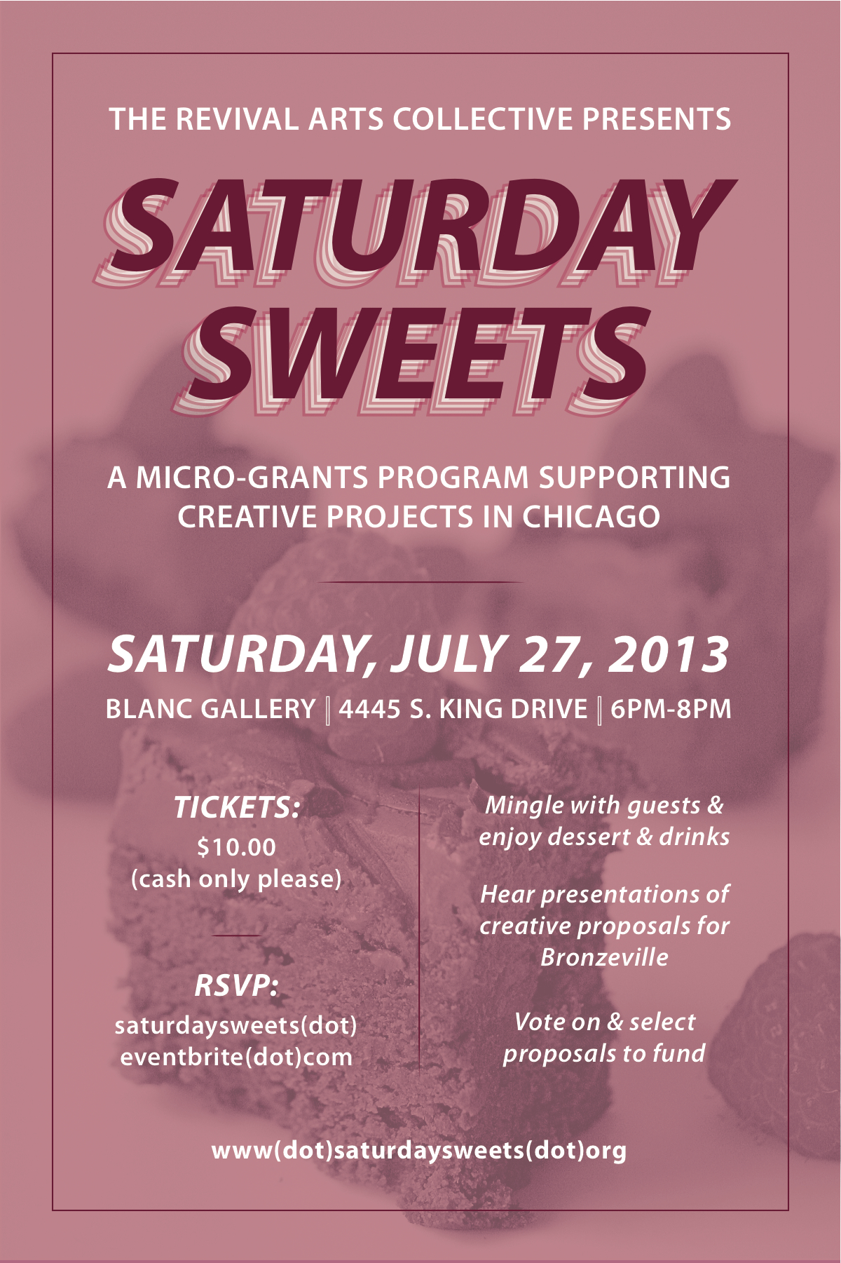 Applications for the next round of micro-grants are due on Friday, June 7, 2013 by 5pm CST – please spread the word about this wonderful, grassroots opportunity. Lastly, we’re looking for a new host for the next Saturday Sweets event, scheduled for Saturday, June 22, 2013 – if you are interested in hosting the event, and/or providing in-kind donations, please contact us via email.